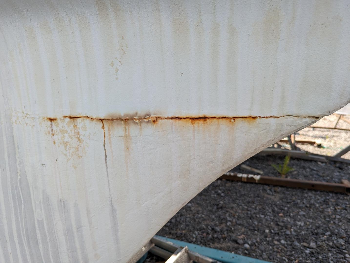 Veneen (-74) talvisäilytyksen jälkeen (ulkona pressun alla) kohdassa missä köli ja runko kohtaa näyttää tältä: